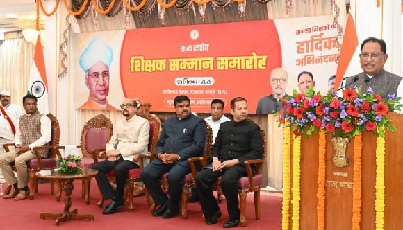समारोह की अध्यक्षता कर रहे मुख्यमंत्री विष्णु देव साय ने कहा कि शिक्षक ही सच्चे राष्ट्र निर्माता होते हैं। वे देश को ऐसे राष्ट्रभक्त नागरिक देते हैं, जो आगे चलकर समाज और राष्ट्र की उन्नति में योगदान देते हैं। जिस प्रकार दीपक स्वयं जलकर दूसरों को प्रकाश देता है, उसी प्रकार शिक्षक भी अनेक कठिनाइयों के बावजूद ज्ञान का उजाला फैलाते हैं। उन्होंने कहा कि छत्तीसगढ़ राज्य अपनी स्थापना के 25 वर्ष पूरे कर रहा है और इस रजत जयंती वर्ष में प्रदेश ने हर क्षेत्र में उल्लेखनीय प्रगति की है। शिक्षा विकास का मूलमंत्र है और इसके बिना जीवन अधूरा है। पिछले वर्षों में शिक्षा के क्षेत्र में भी व्यापक विस्तार हुआ है। आज प्रदेश में 20 से अधिक विश्वविद्यालय, 15 से ज्यादा मेडिकल कॉलेज और राष्ट्रीय ख्याति प्राप्त संस्थान जैसे आईआईटी, आईआईएम, एम्स तथा लॉ विश्वविद्यालय स्थापित हैं।